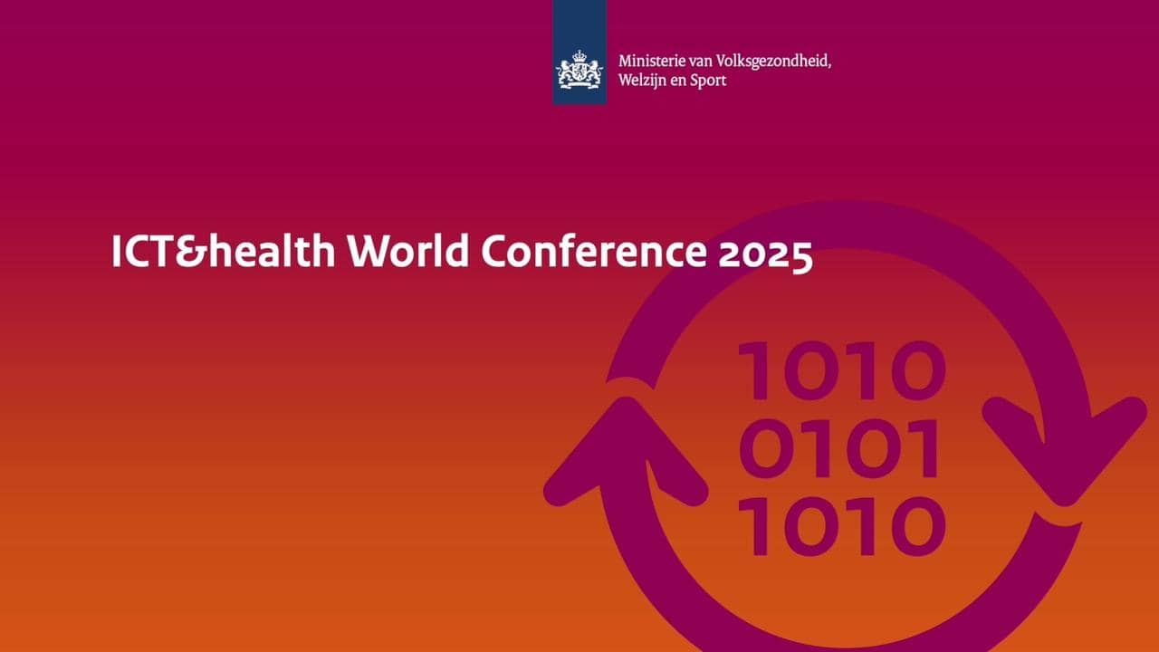 [Logo Rijksoverheid. Ministerie van Volksgezondheid, Welzijn en Sport. ICT&health World Conference 2025.]