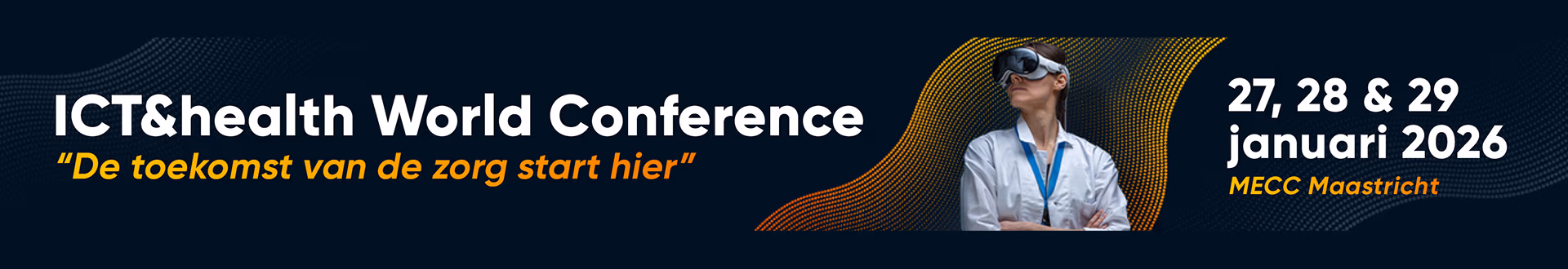 Kom dan op 27, 28 en 29 januari 2026 naar de ICT&health World Conference in Maastricht.. Dit meerdaagse internationale congres, dat draait om de toekomst van de zorg, biedt een uniek podium om een nationale én internationale dialoog te voeren over een toekomstbestendig gezondheidsinformatiestelsel. Het ministerie van VWS ziet het congres als een kans om te inspireren en zelf geïnspireerd te worden over de wereldwijde beweging naar databeschikbaarheid in de zorg.